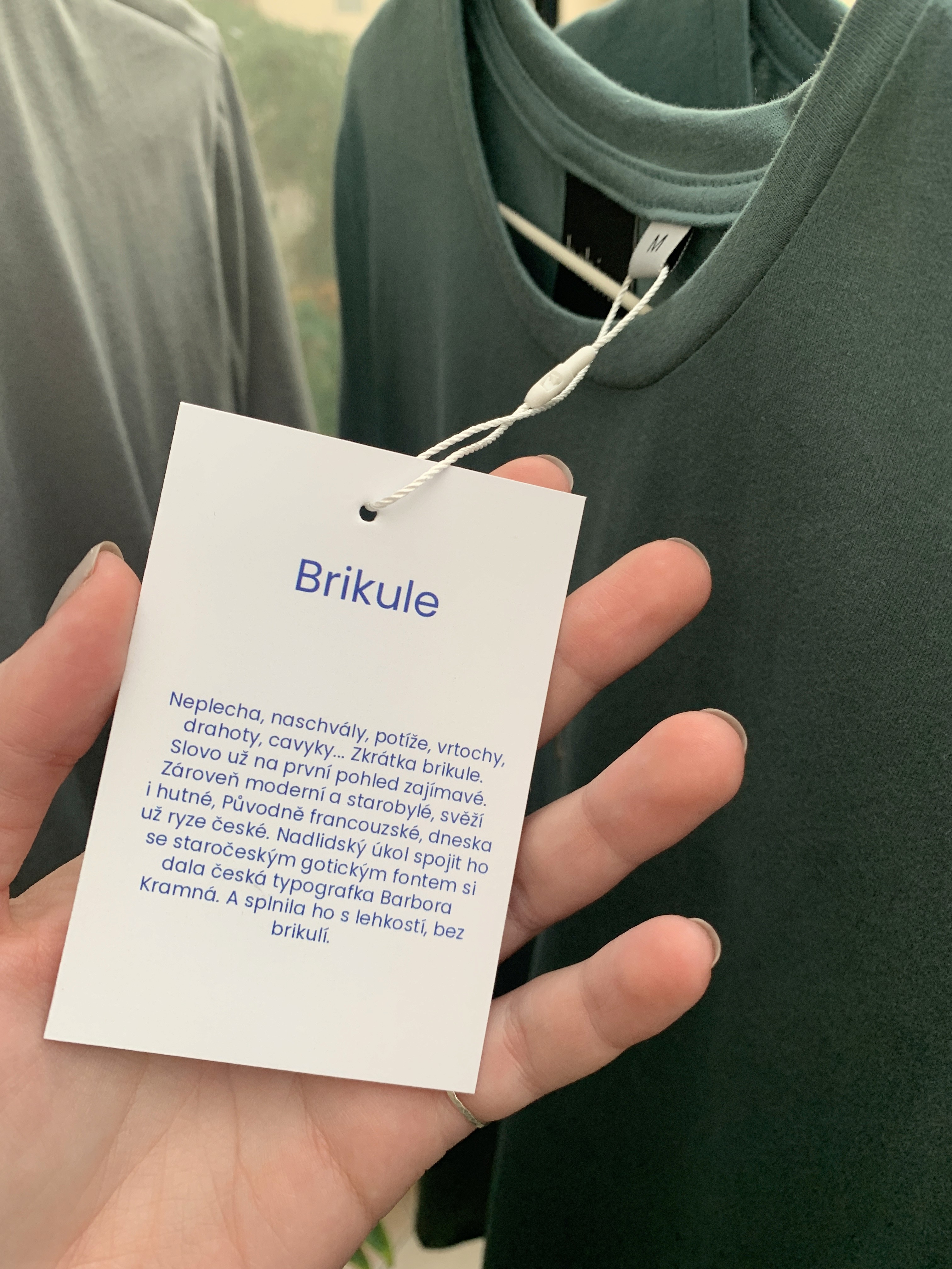 Mým úkolem bylo vizuálně zpracovat slovo „Brikule“, výraz, který v sobě spojuje hravost, ironii a staročeský původ. Cílem bylo vytvořit lettering, který bude současný, ale zároveň ponese historický odkaz a typografickou kvalitu. Výsledkem se měl stát motiv, který působí silně i v minimalistickém zpracování výšivkou.