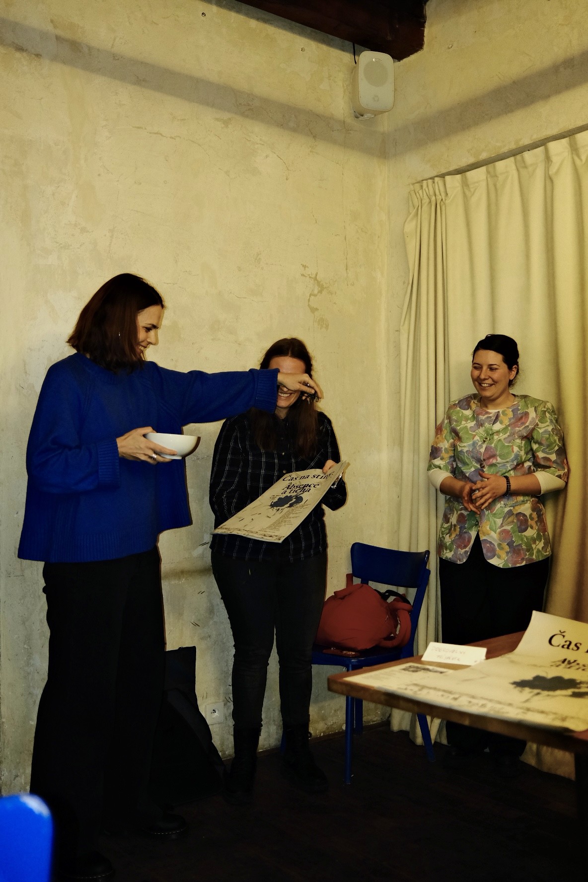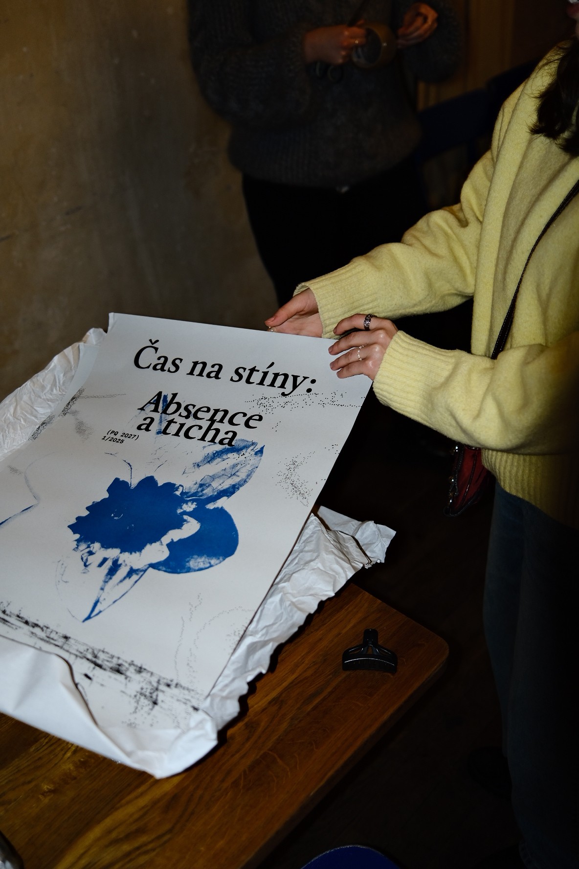 Salon české scénografie je největší a jedinou národní oborovou přehlídkou současné scénografie v Česku. Navazuje na dlouhou tradici historických salonů i na Národní přehlídky české scénografie, které od 70. let fungovaly jako předvýběr pro Pražské Quadriennale. Dnes představuje otevřenou platformu pro etablované i nastupující tvůrce a prostor pro odborný dialog napříč generacemi, médii i žánry. Druhé číslo zinu ČOSDAT Čas na stíny vzniklo jako součást této platformy a bylo věnováno přihláškám českých projektů do Výstavy zemí a regionů a Studentské výstavy pro Pražské Quadriennale. Cílem bylo navrhnout druhé číslo zinu ČOSDAT jako experimentální, nízkorozpočtovou, ale výraznou tiskovinu, která nebude pouze dokumentačním nosičem obsahu. Zin měl představit jednotlivé přihlášené projekty, pracovat s tématem Čas na stíny: absence ticha a zároveň reflektovat podmínky produkce, omezený rozpočet, velký formát a tisk na recyklovaný novinový papír. Zin jsme pojaly jako vizuální prostor mezi přítomností a nepřítomností. Téma „absence ticha“ se propsalo do práce s prázdnem, kontrastem, fragmentací a rytmem sazby. Velkoformátové noviny umožnily pracovat s měřítkem, plochou i čitelností jednotlivých projektů, každý z nich dostal vlastní stranu nebo dvoustranu. Součástí zinu jsou autorské digitální malby, které vstupují do publikace jako další vrstva významu. Neilustrují konkrétní projekty, ale vytvářejí tichý zásah a vizuální napětí i propojení mezi jednotlivými částmi.
