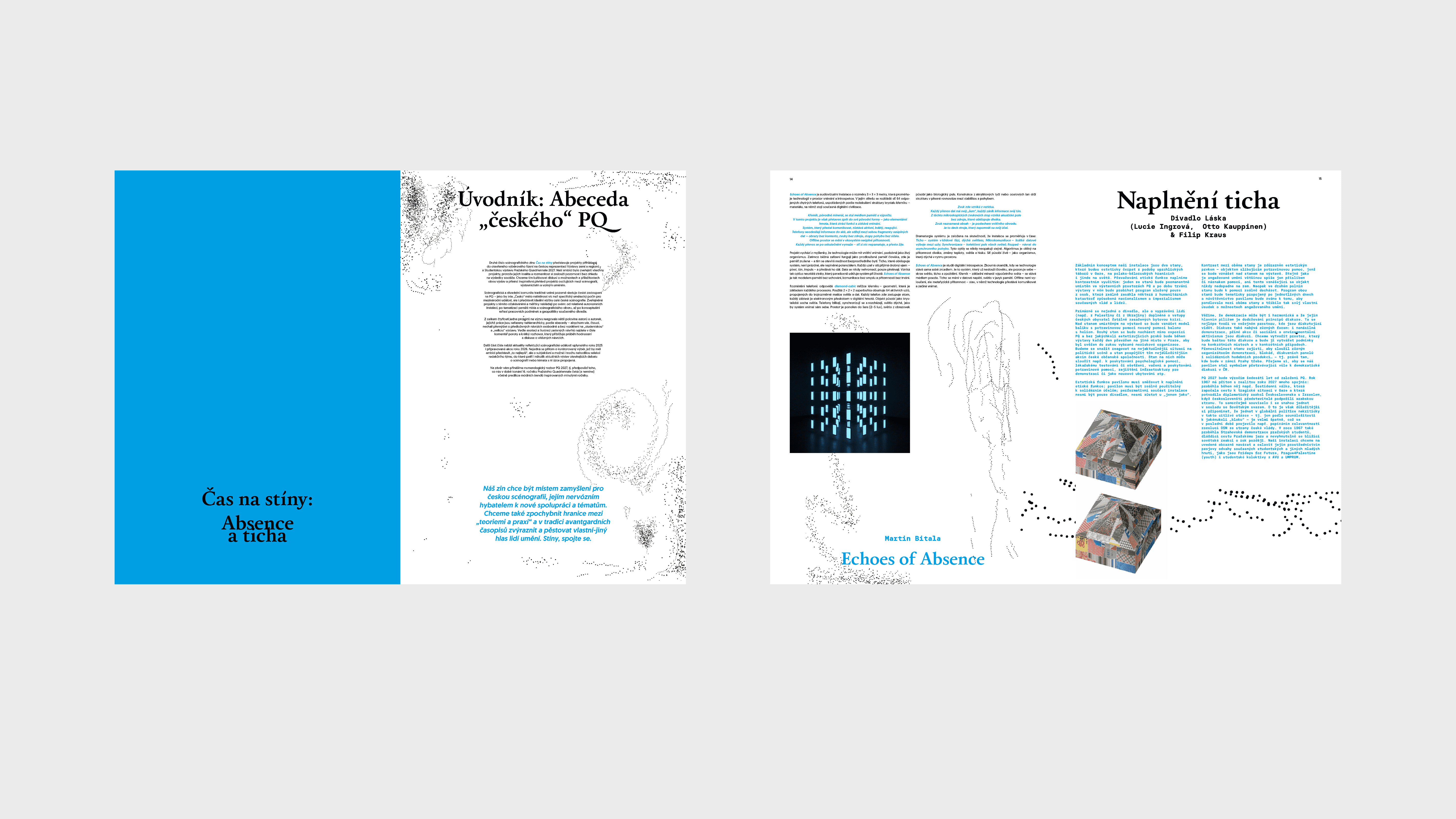 Druhé číslo zinu ČOSDAT Čas na stíny vyšlo na konci ledna 2026 a bylo pokřtěno 29. 1. 2026 v Klubu Betlémská. Publikace slouží jako přehled přihlášených projektů pro Pražské Quadriennale, ale zároveň jako samostatný experimentální artefakt, který reflektuje současné otázky scénografie, ticha, absence a vizuálního vyprávění. Celý zin si můžete prolistovat zde: https://cosdat.idu.cz/vychazi-druhe-cislo-zinu-cas-na-stiny/ Klient Salon české scénografie Grafické zpracování Valerie Kolářová, Barbora Kramná Korektury a vydavatel ČOSDAT Tisk Tiskárna Karmášek Fotografie Daniel Holan